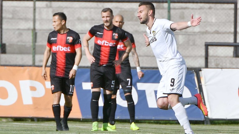 Все пак "железничарите" успяха да изравнят в 35-ата минута. Димитър Илиев беше изведен централно и прехвърли излизащия и лягащ Георги Петков. Велковски покри засада след лошо позициониране.