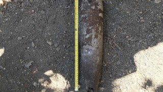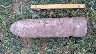 Открит е 100 мм силно корозирал артилерийски снаряд