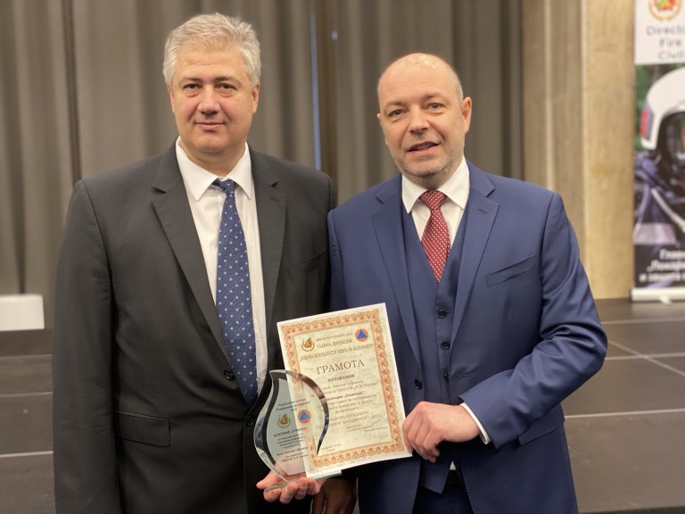 Проф. Габровски получи отличието в Категория "Отличени" за съществен принос за осигуряване на пожарната безопасност и защита на населението заради бързите и адекватни действия за минимизиране щетите при пожара, който избухна в сградата на Клиниката по вътрешни болести на "Пирогов" на 26 срещу 27 ноември 2019 г.