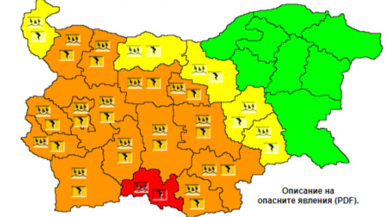 Главна дирекция "Пожарна безопасност и защита на населението" (ГДПБЗН) предприема превантивни действия във връзка с метеорологичната прогноза за следващото денонощие. Националният институт по метеорология и хидрология (НИМХ) предупреждава за очаквани гръмотевични бури, значителни валежи и локални градушки, съобщиха от МВР. В Западна и Южна България и в Централния Подбалкан количества на валежите ще достигат до 50-60 мм, а на места в Родопската област и Ихтиманска Средна гора - до 80-100 мм.