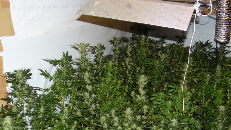 На втория етаж на къщата криминалистите попаднали на оборудвана оранжерия за домашно отглеждане на канабис. Иззети оттам са 73 саксии с канабисови растения и около един килограм растителна маса, наподобяваща канабис.