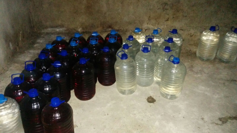 По време на огледа на кухнята, митничарите забелязали на пода, във вграден шкаф точно под мивката, капак с малък диаметър, прикрит с различни кухненски принадлежности. Оказало се, че капакът е врата към подземно помещение, до което се слиза с дървена стълба. Именно в тайната изба били скрити 57 туби с вместимости 5 и 10 л. или общо 509 л. етилов алкохол.