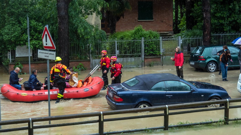 Тази седмица хиляди бяха евакуирани от домовете си, след като проливен дъжд удари район между градовете Болоня и Римини на адриатическото крайбрежие. Повече от 20 реки излязоха от коритата си, предизвиквайки наводнения и стотици свлачища.