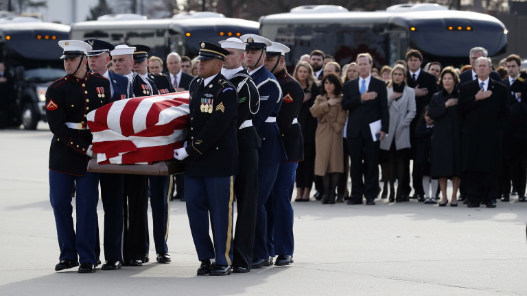 Последна почит към него отдадоха настоящият държавен глава Доналд Тръмп и съпругата му Мелания, Барак и Мишел Обама, Бил и Хилари Клинтън, Джими Картър и съпругата му Росалин, както и синът на покойния държавен глава - Джордж Буш-младши със съпругата му Лора.