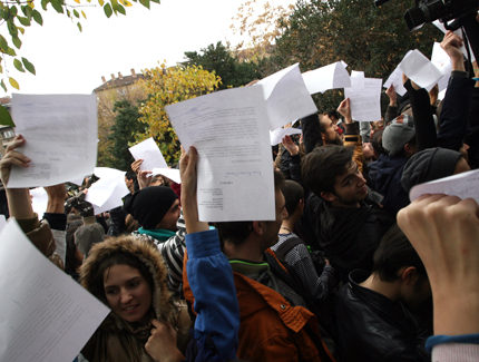 Малко след началото на протеста към преподавателите се присъединиха и група ранобудни студенти, които също изразиха възмущението си от вчерашните действия на полицията и поискаха оставка на вътрешния министър Цветлин Йовчев.