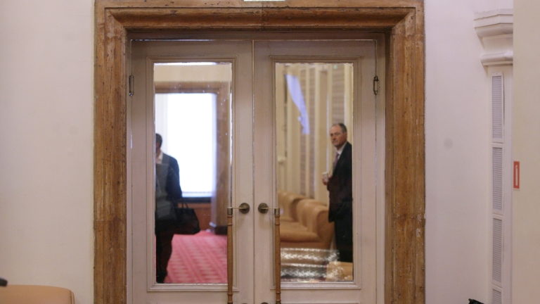Лидерът на ДПС и заместник-председателят на ГЕРБ Цветан Цветанов се затвориха в стаята на ДПС в парламента.