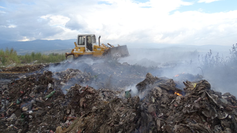 Борбата с ликвидирането на пожара в сметището край Бараково и Благоевград продължава и днес.