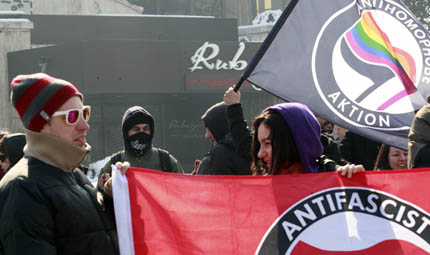 на 14.02.2015 в 16:19:49 #10снимката кърти. бсп митинг с гей знаме. млади левоориентирани педали...