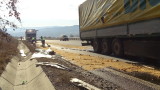 За щастие няма пострадали, шофьорът е в добра кондиция, но катастрофата предизвика задръстване с дължина над километър.