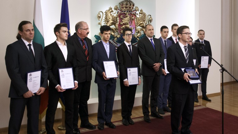 Президентът връчи грамоти в същата категория и на Антон Колов и неговият преподавател Красимир Кирилов от Монтана, които представят България в състезанията по информационни технологии.