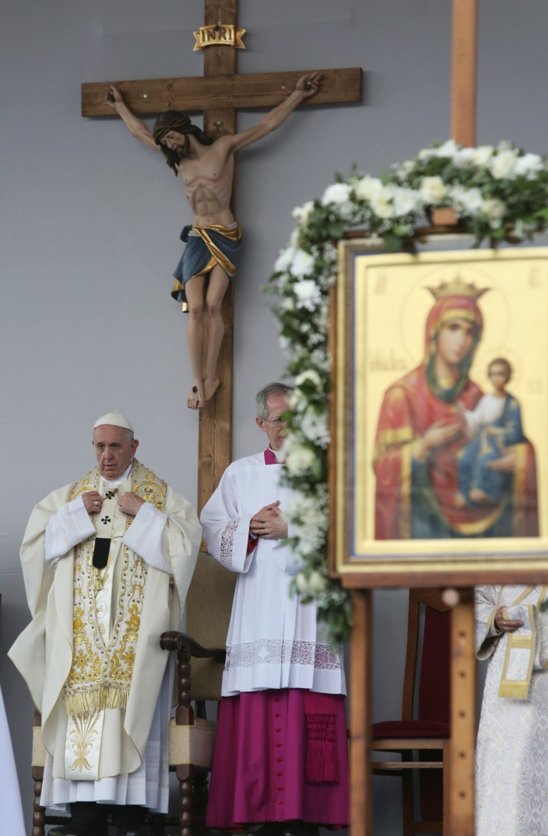 Така започна Неделната литургия на площад “Александър Първи”, водена от папа Франциск. Светата литургия започна с 15 минути по-рано.