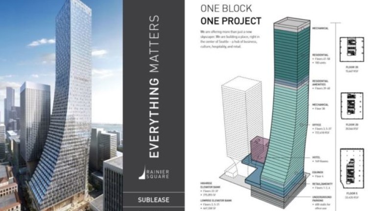 Amazon обяви, че преотдава част от офис площите си в Сиатъл в емблематичния небостъргач на площад "Рейниър", съобщи geekwire.com.
