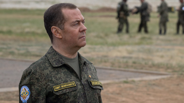 Медведев, който каза, че подозрението на украинския президент Володимир Зеленски към православните свещеници в Украйна, които са под юрисдикцията на Руската православна църква, е мотивирано от "кокаин и сатанизъм", настоя, че американската подкрепа за двете страни ще доведе до унищожаването и на двете.