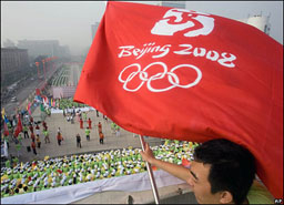 Китайската столица Пекин се подготвя за откриването на Олимпийските игри 2008 с пищна церемония в замъгленото небе и замърсения въздух, коментира Би Би Си.