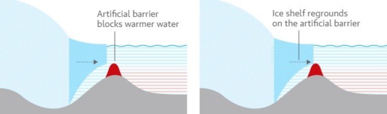 Препятствията ще имат за цел да спират топенето на ледниците, а също така предотвратяване по-топлата вода да достигне до основата на ледниците под водата. В момента се провежда ново проучване от учени, което показва как ефектът от по-топлата вода в океаните може да се окаже водеща причина за топенето на ледниците.